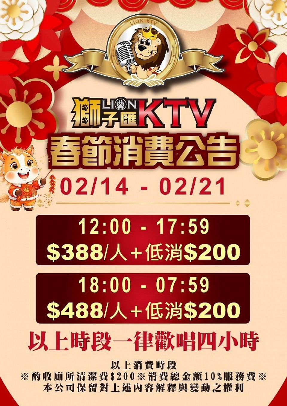 獅子匯KTV為回饋客戶、即日起來電訂位報[權鑫],立即招待炸物盤乙份。